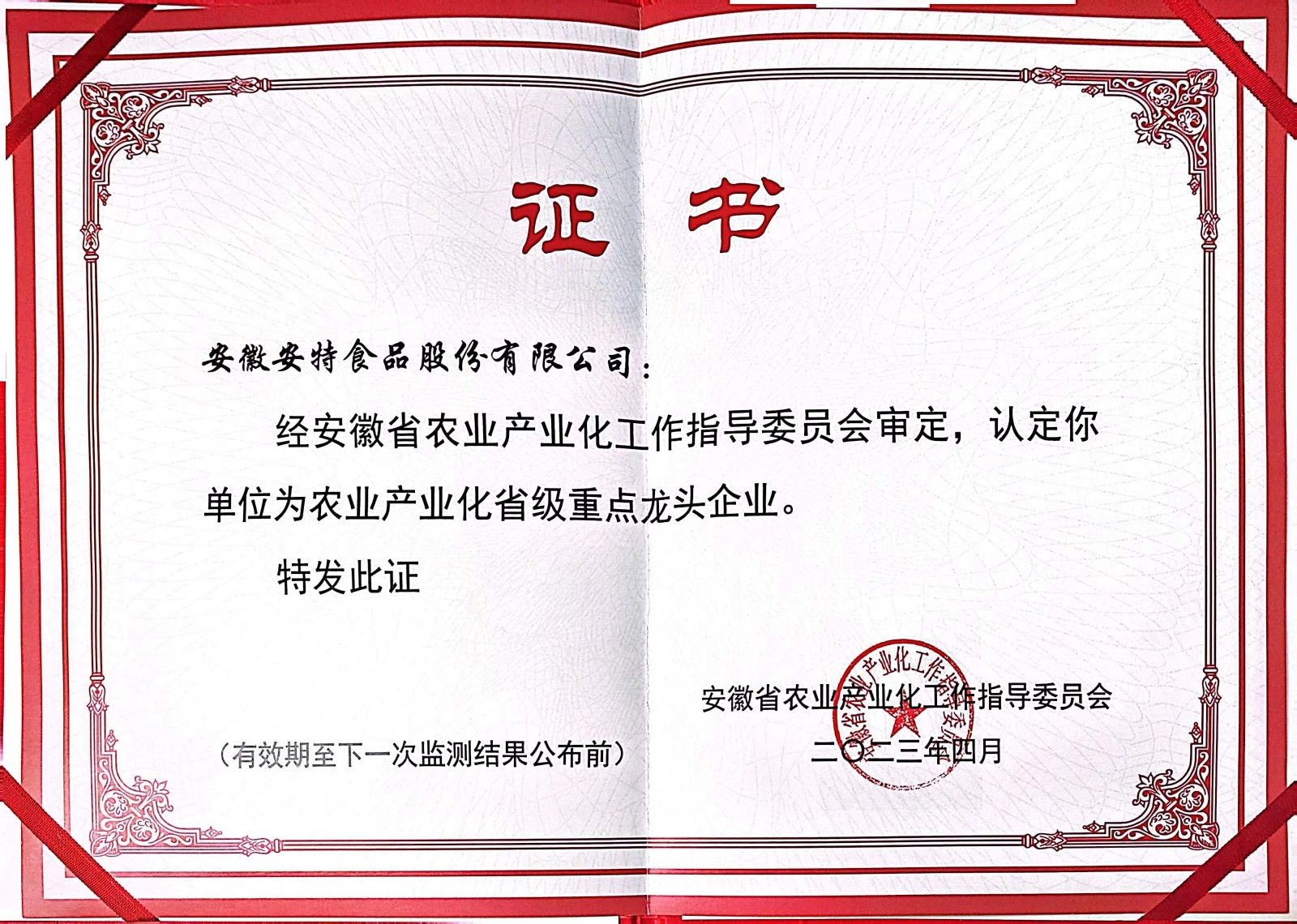 公司再次獲評“農(nóng)業(yè)產(chǎn)業(yè)化省級重點龍頭企業(yè)”