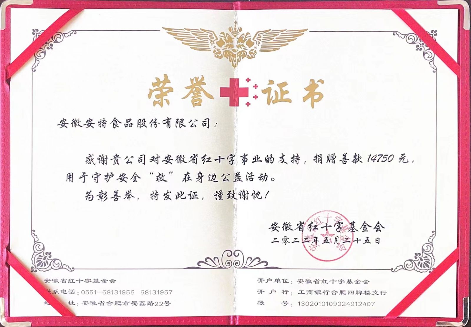公司通過省紅十字基金會向宿州市雪楓小學金海校區(qū)捐贈安全防護書包50個